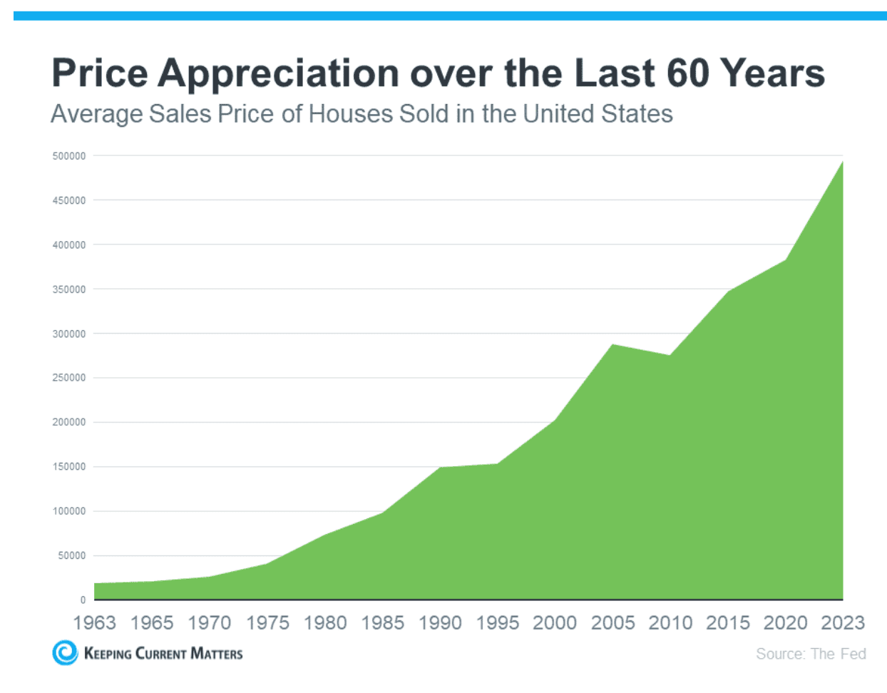 There's been some confusion about what's been happening with home prices over the past couple of years. Although they dipped slightly in late 2022, this year they've been going up at a more usual rate, which is good news for the housing market. While it's easy to worry when you look at prices over just a year or two, history shows that in the long run, home values tend to go up (see the chart below).
